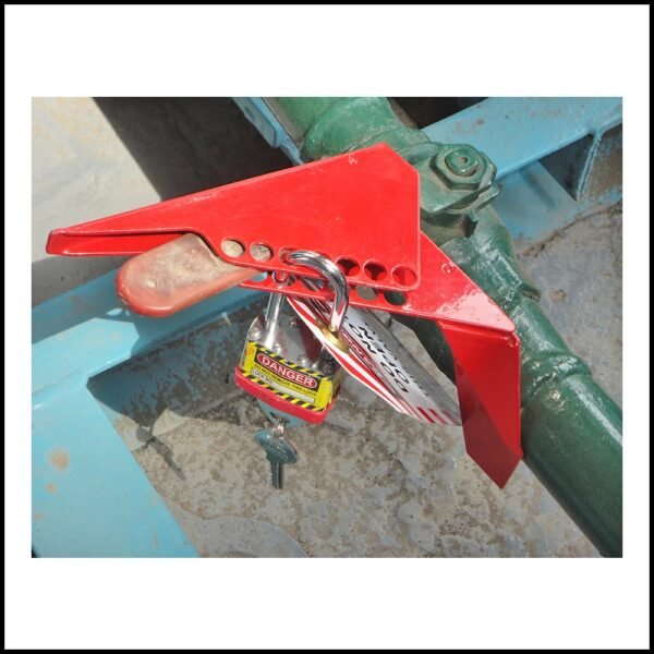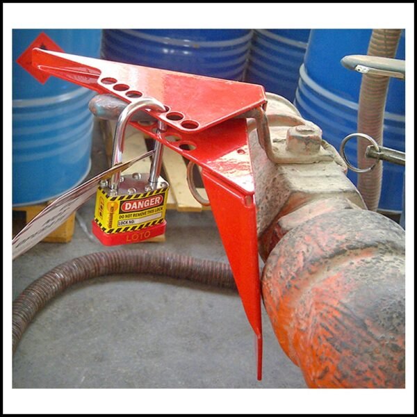 The Steel Ball Valve Lockout device is made of steel and powder coated for enhanced durability. It is compact in size, easy to use, and accommodates 6 padlock holes. Its unique design makes it ideal to secure the ball valve handle in the off position. This lockout device fits off and quarter-turn valve handles to prevent accidental opening. Two rows of lockout points are provided for a secure fit.