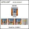 Circuit Breaker Locking Device locks outs 600A MCCB’s with Oversized toggles.