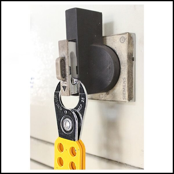 Safety lockout hasps are effective for multi-person group lockout activities. Up to 6 padlocks can be inserted into these hasps allowing multiple workers to insert their individual padlocks into the hasp for isolating electrical and mechanical energy sources.