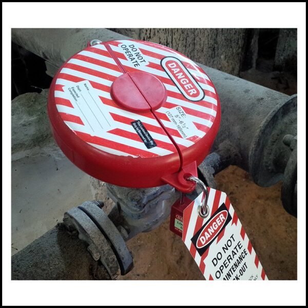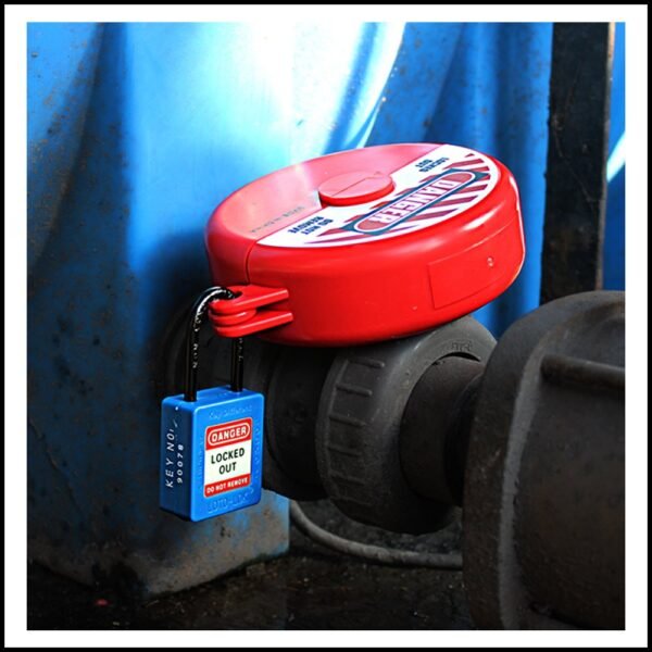 ● Simply wrap around the wheel, insert padlock and tag to immobilize the valve handle.